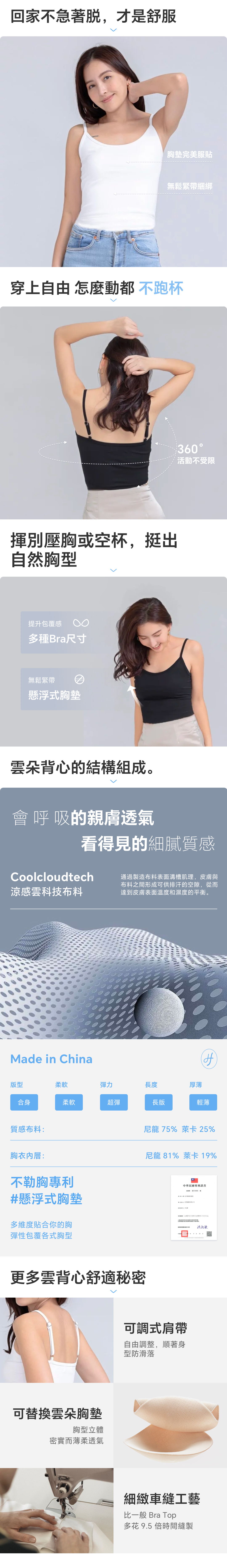 無鬆緊帶的設計,不勒胸、不跑位、胸型自然