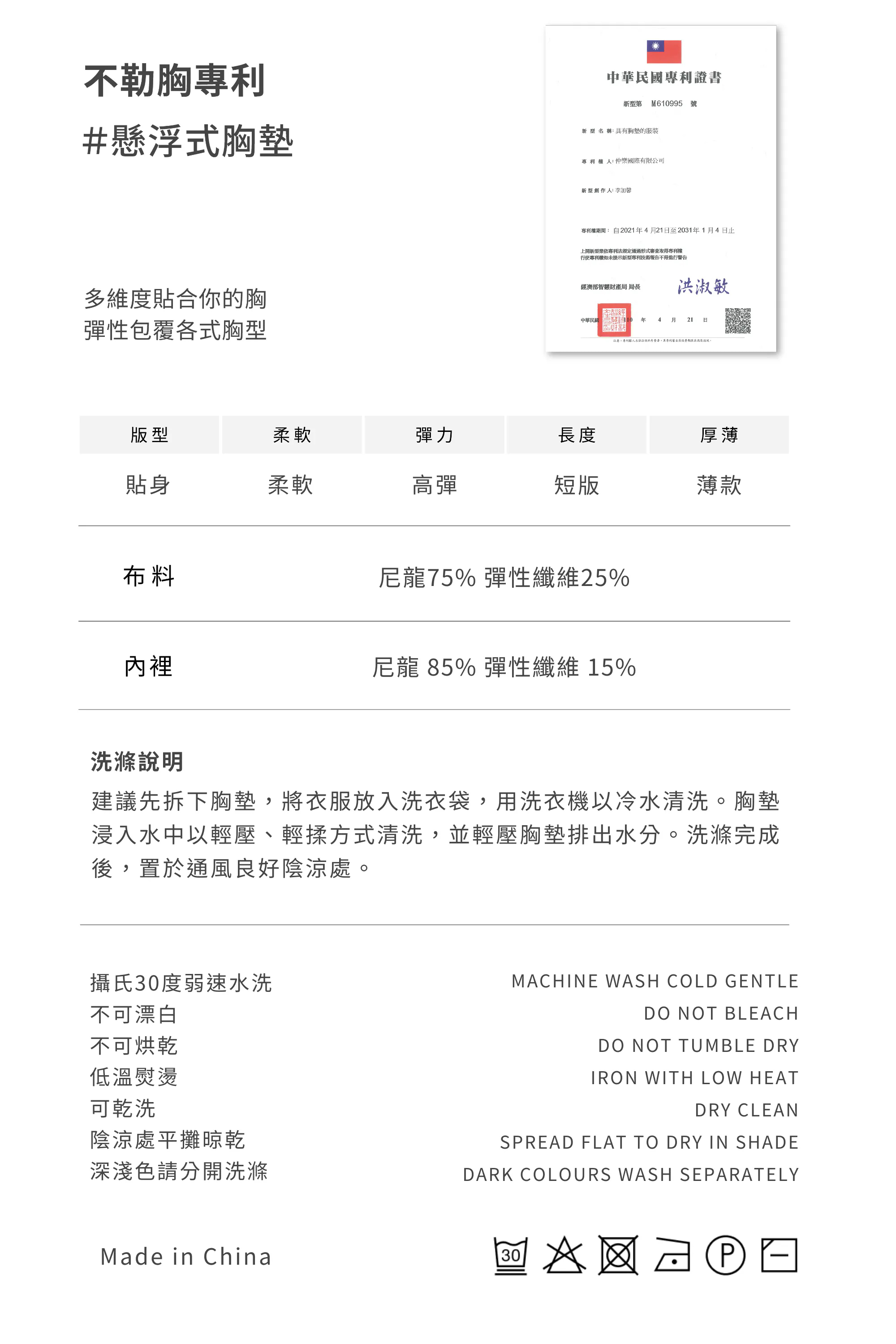 【僅以胸前片服貼於胸】