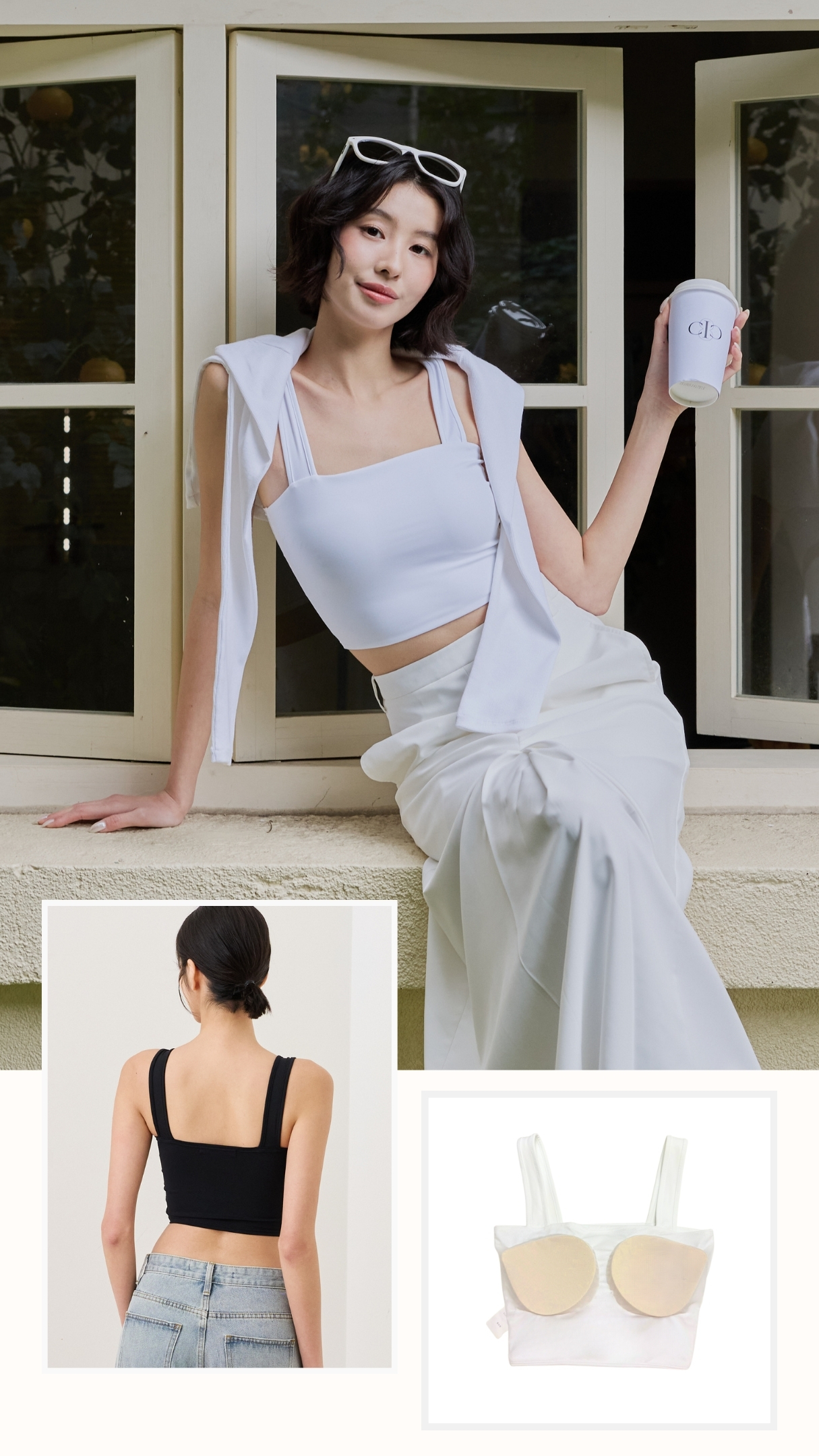 寬肩帶雲平口 Bra Top-白