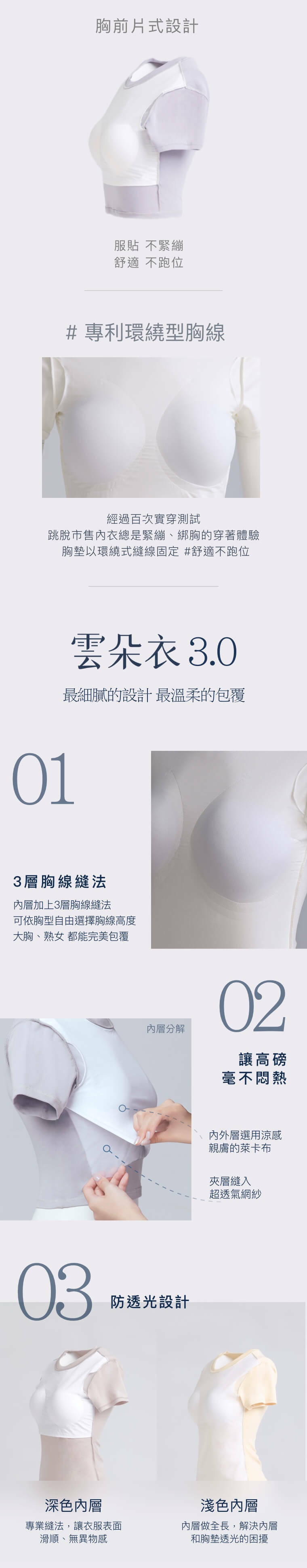 • 專利3層縫法:自由調整胸墊位置,友善各種胸型