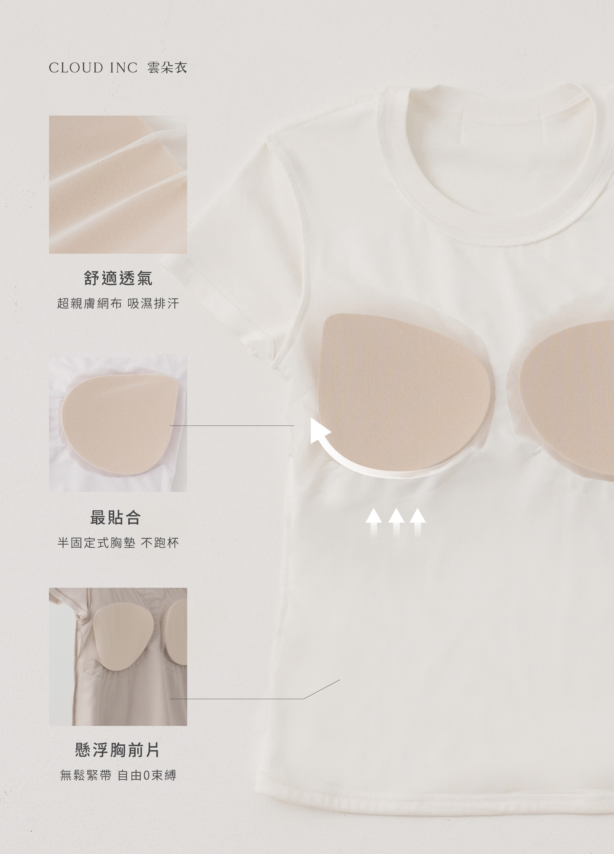 內建雲朵胸墊,模擬「胸貼」般的0束縛