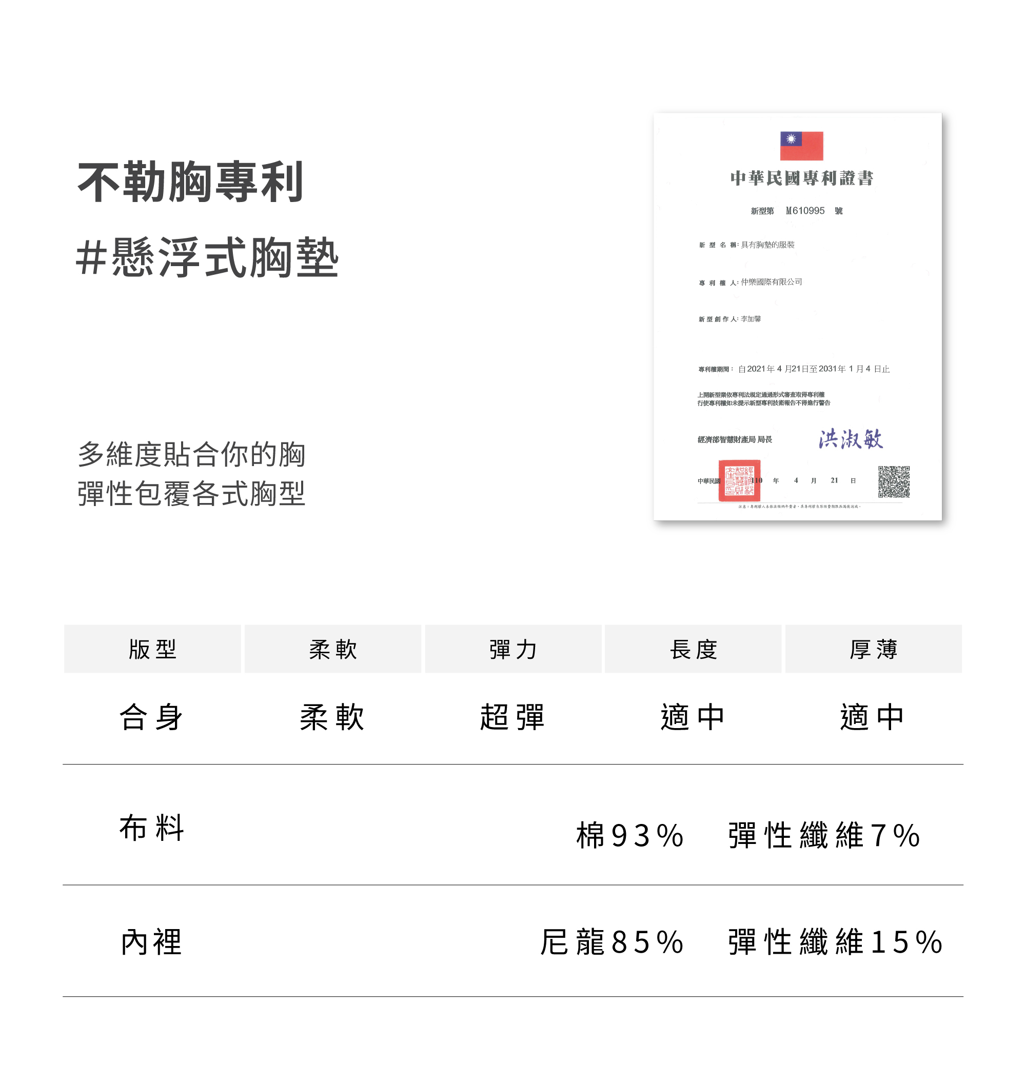 內建雲朵胸墊,模擬「胸貼」般的0束縛;