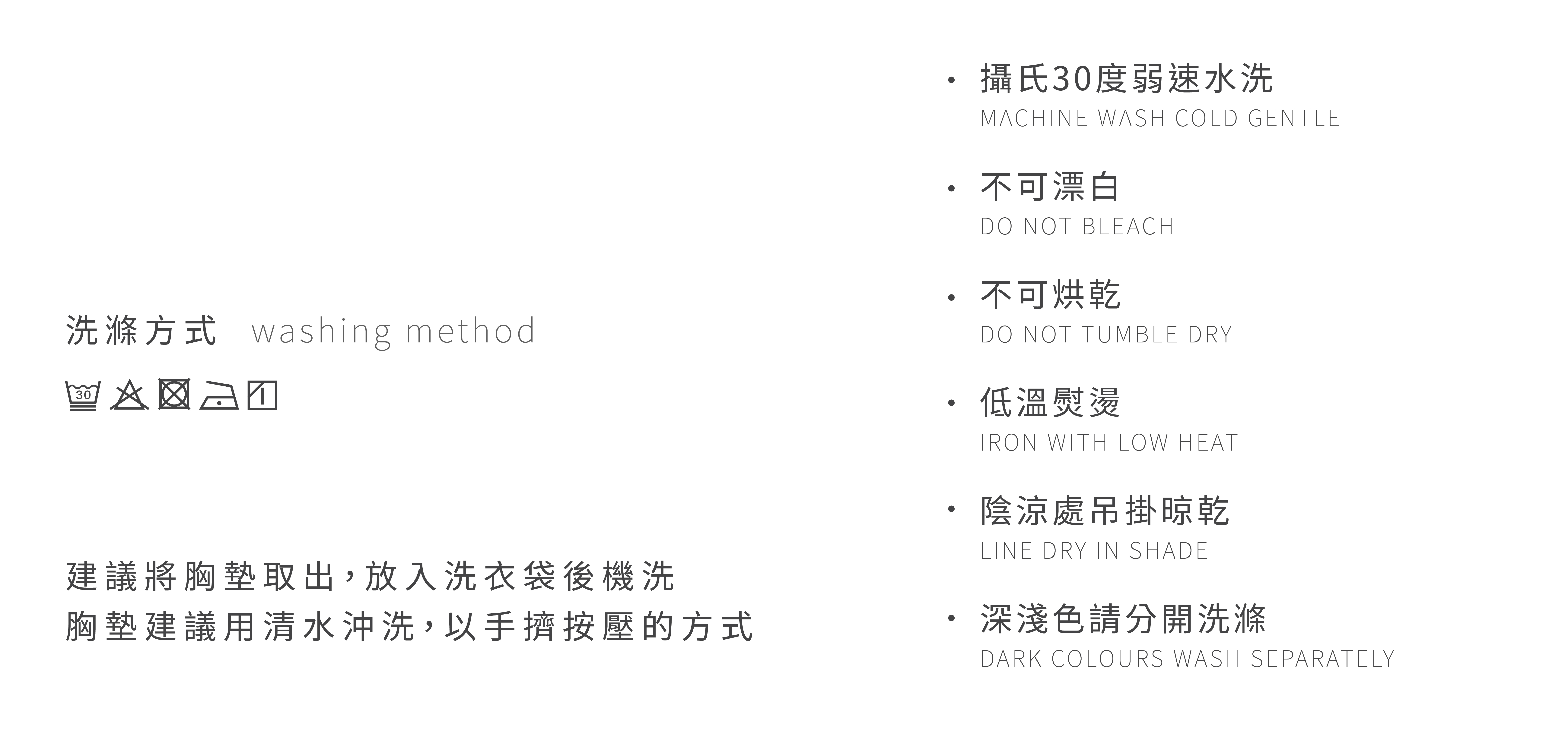 *一件衣服會免費附上一對可拆式胸墊,若需要替換罩杯可另外購買