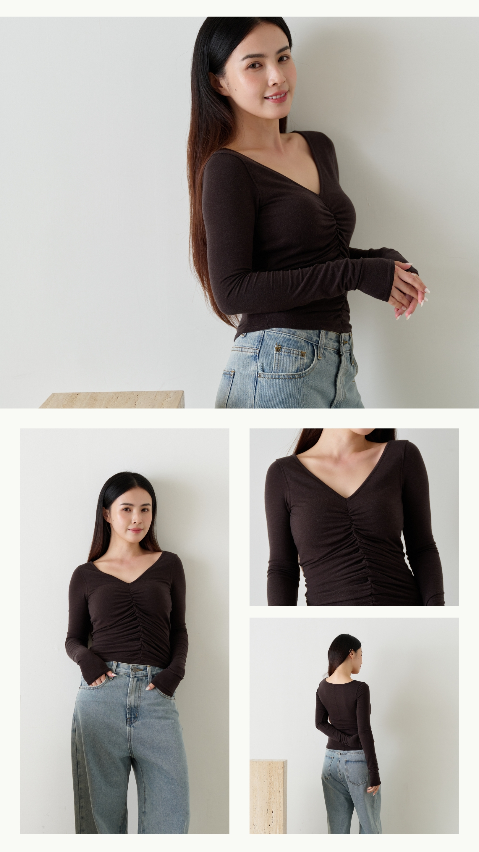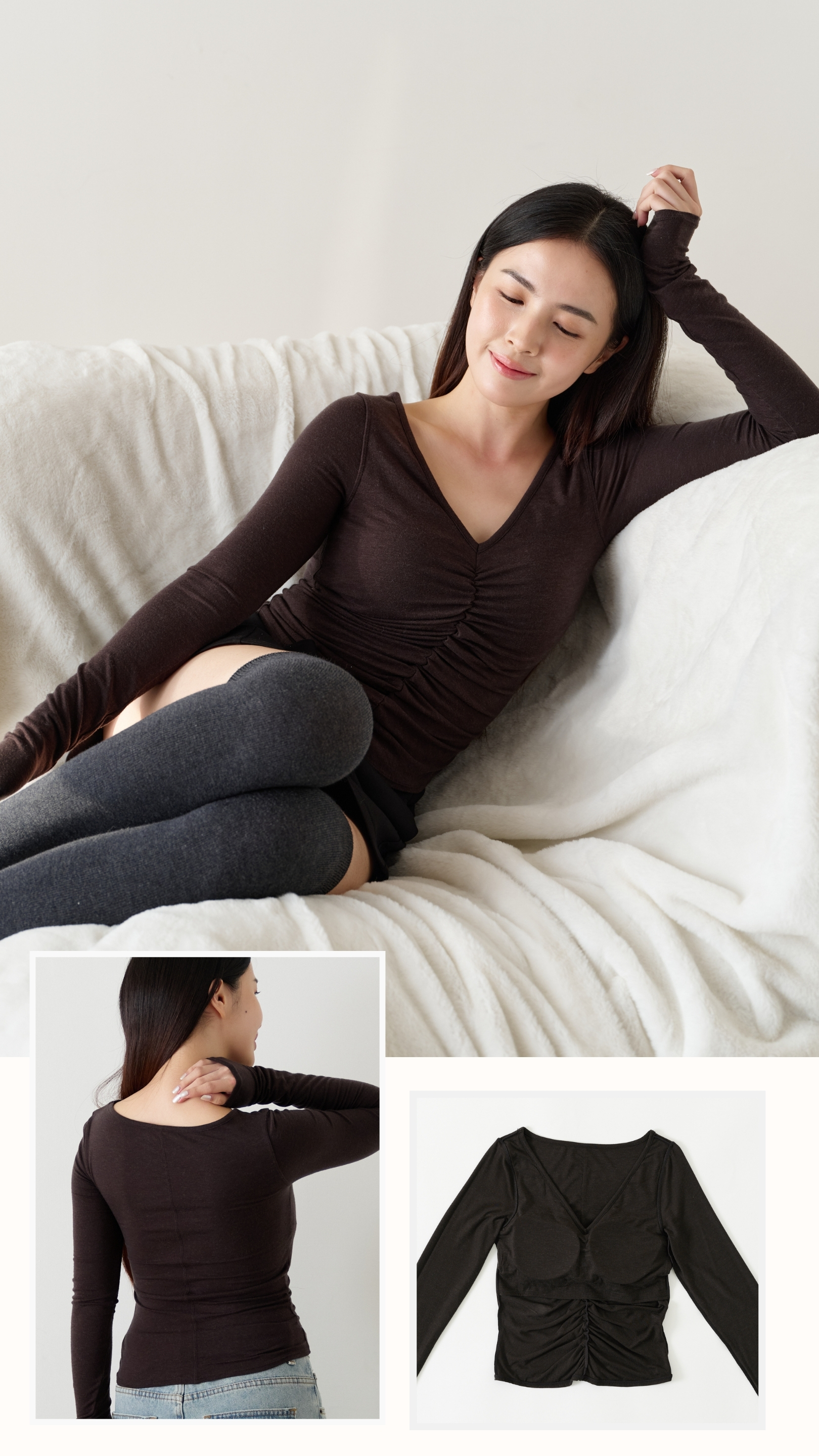 • 寬V領設計,可露鎖骨、當內搭不易外露