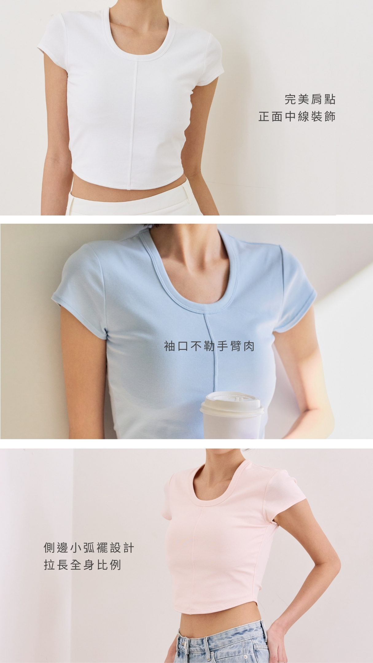 ➀ 窄長領口,拉長頸部線條