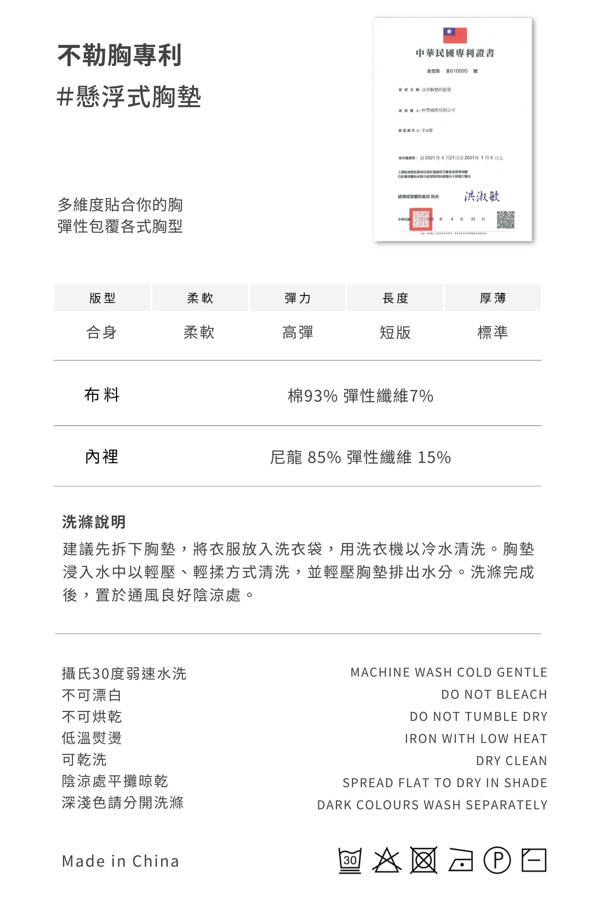 Size M:內含M胸墊