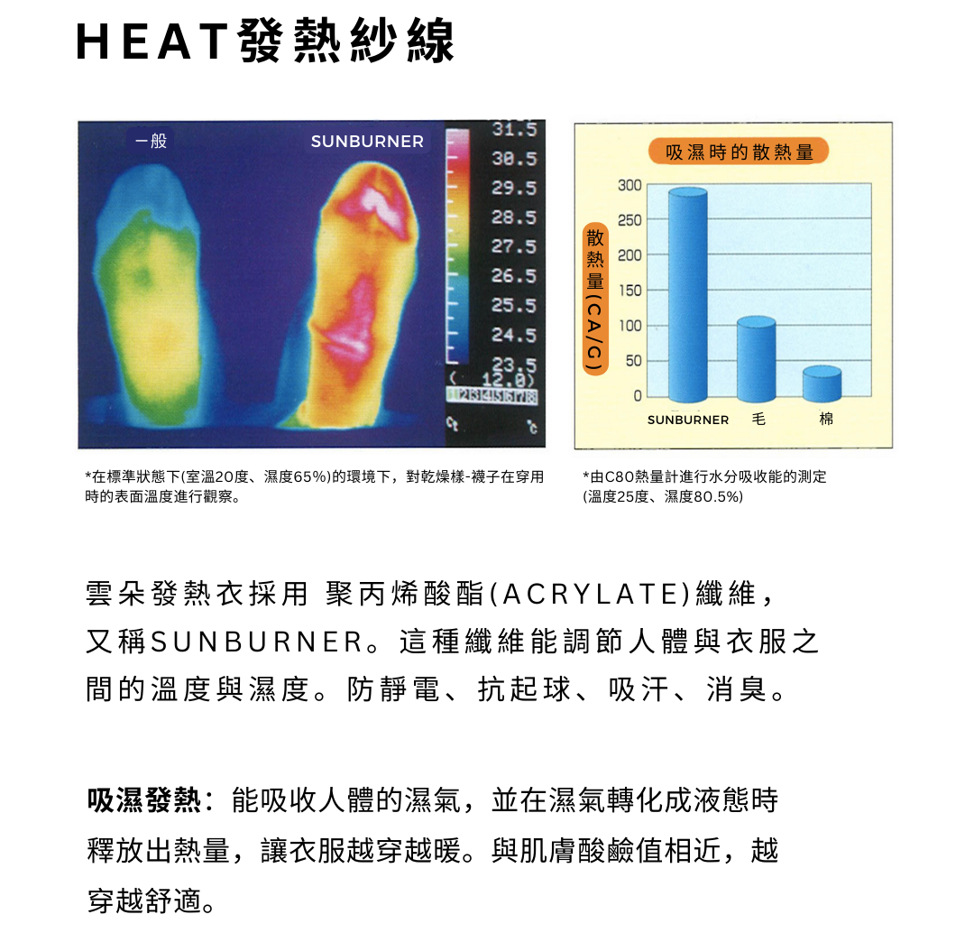 • 日本引進吸濕發熱紗種,專為台灣氣候設計