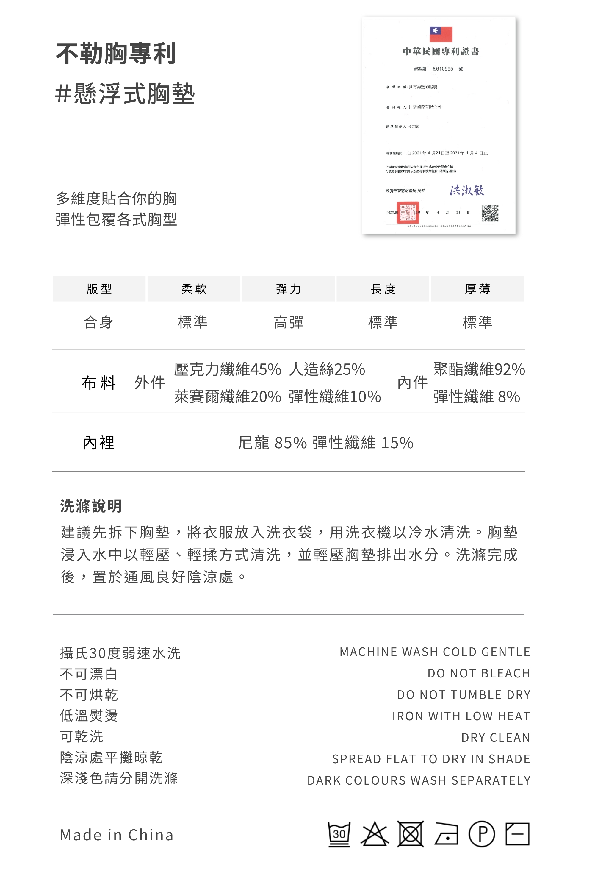 Size M:內含M胸墊