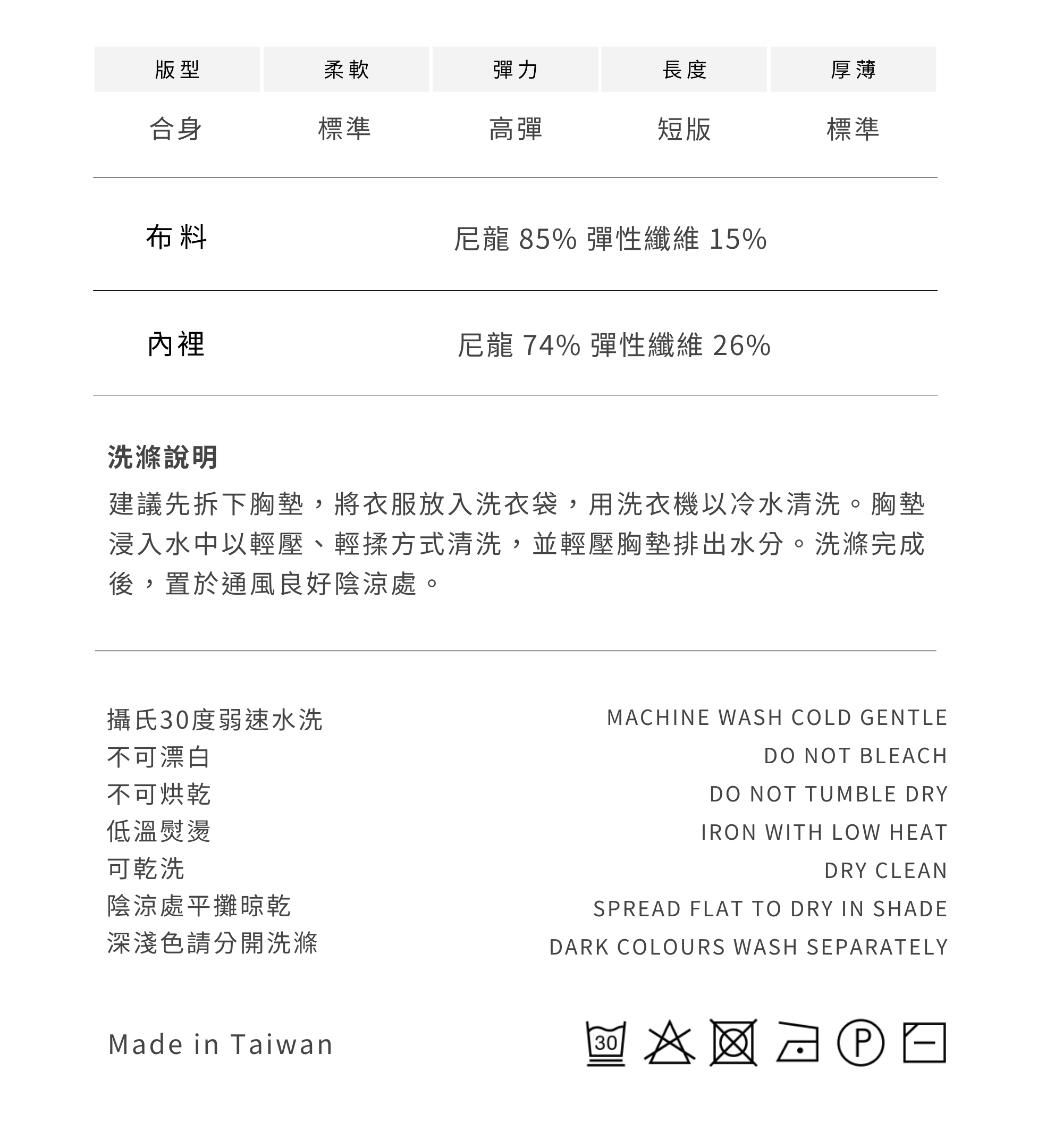 商品尺寸資訊