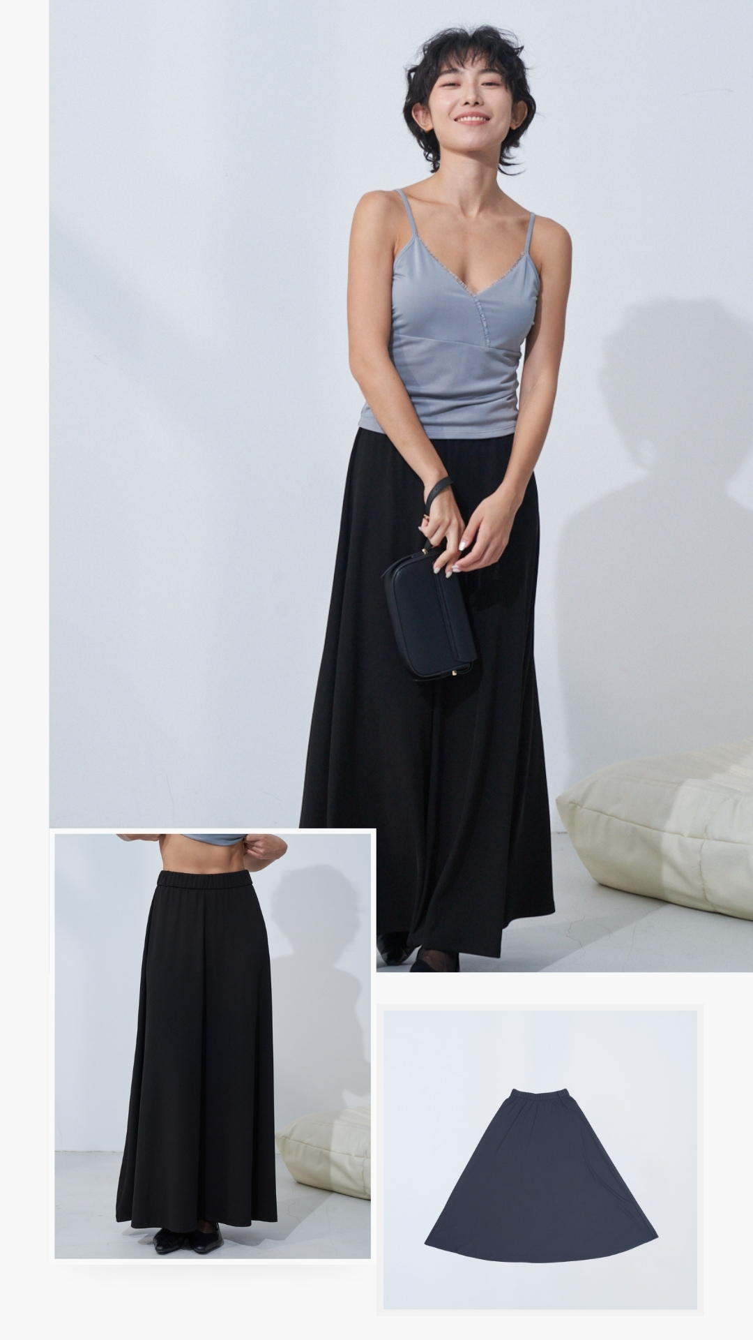 ・ 斜裁裙身隨步伐擺盪,裙襬波動更顯流動感