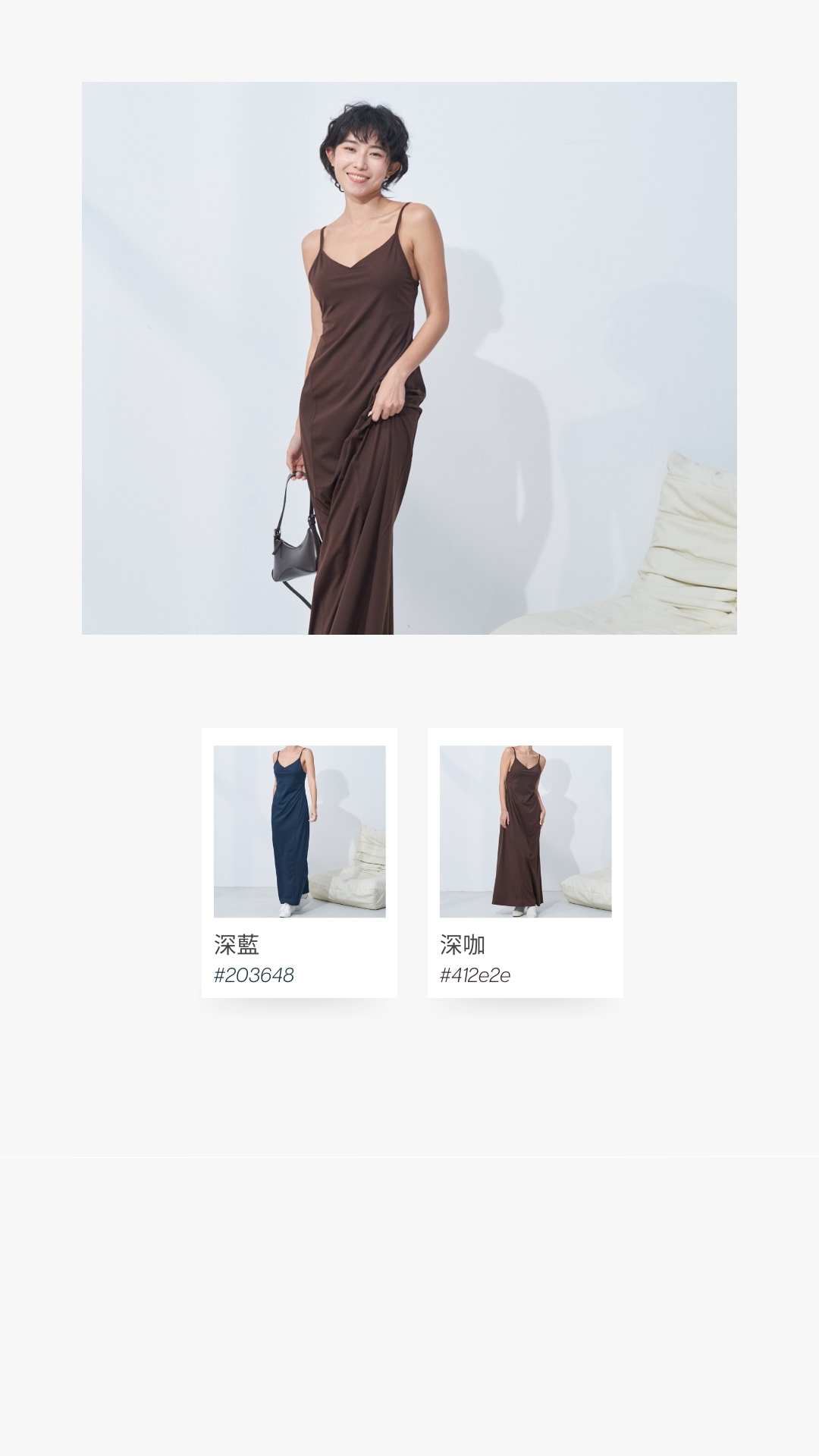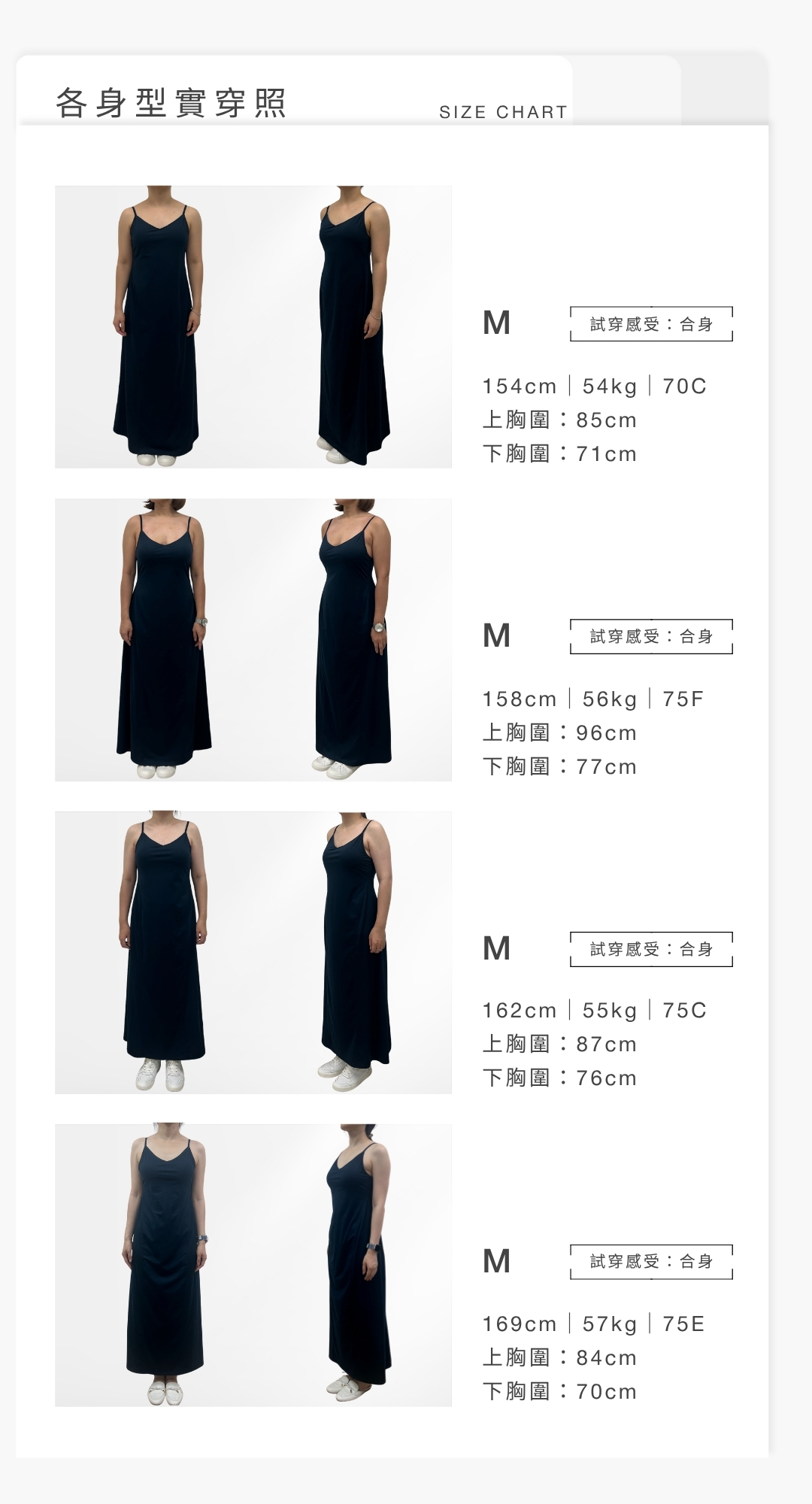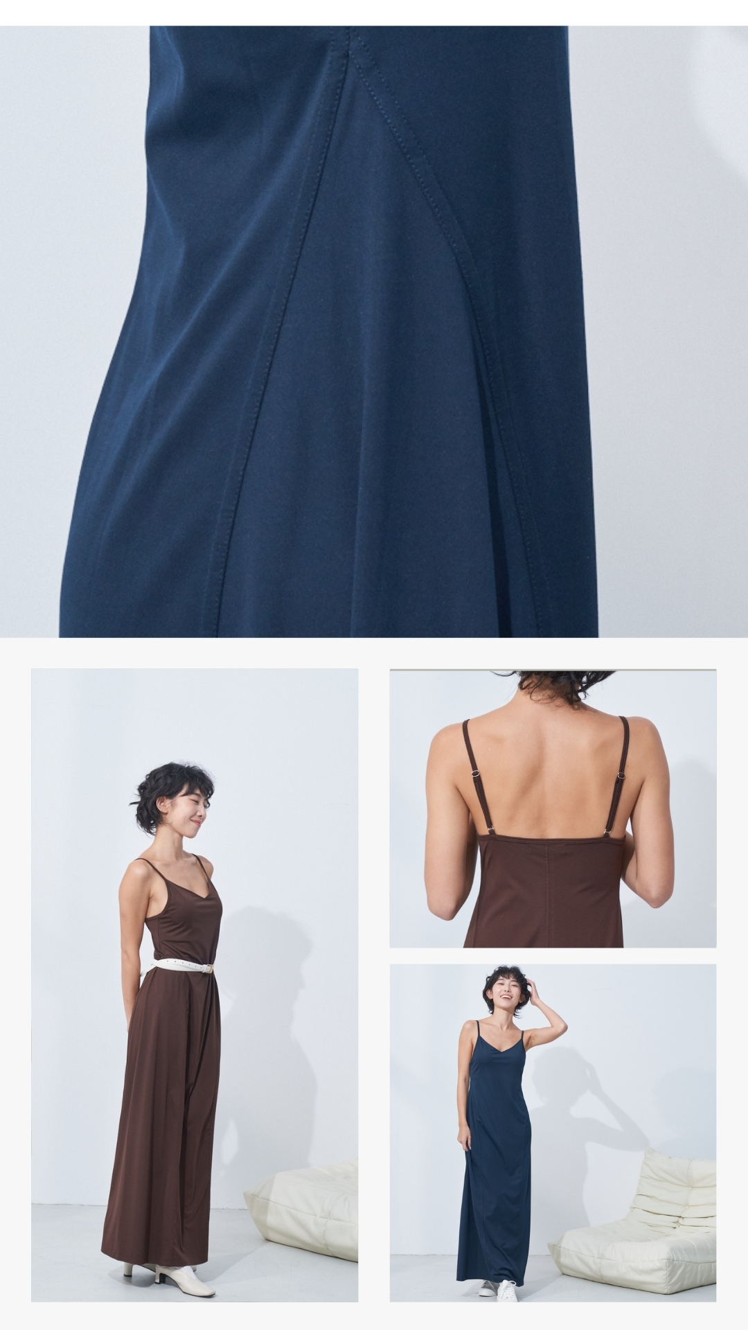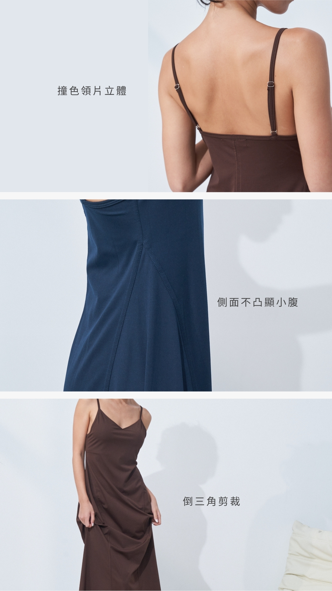 ・ 可調節式細肩帶,布料微亮、輕盈軟彈