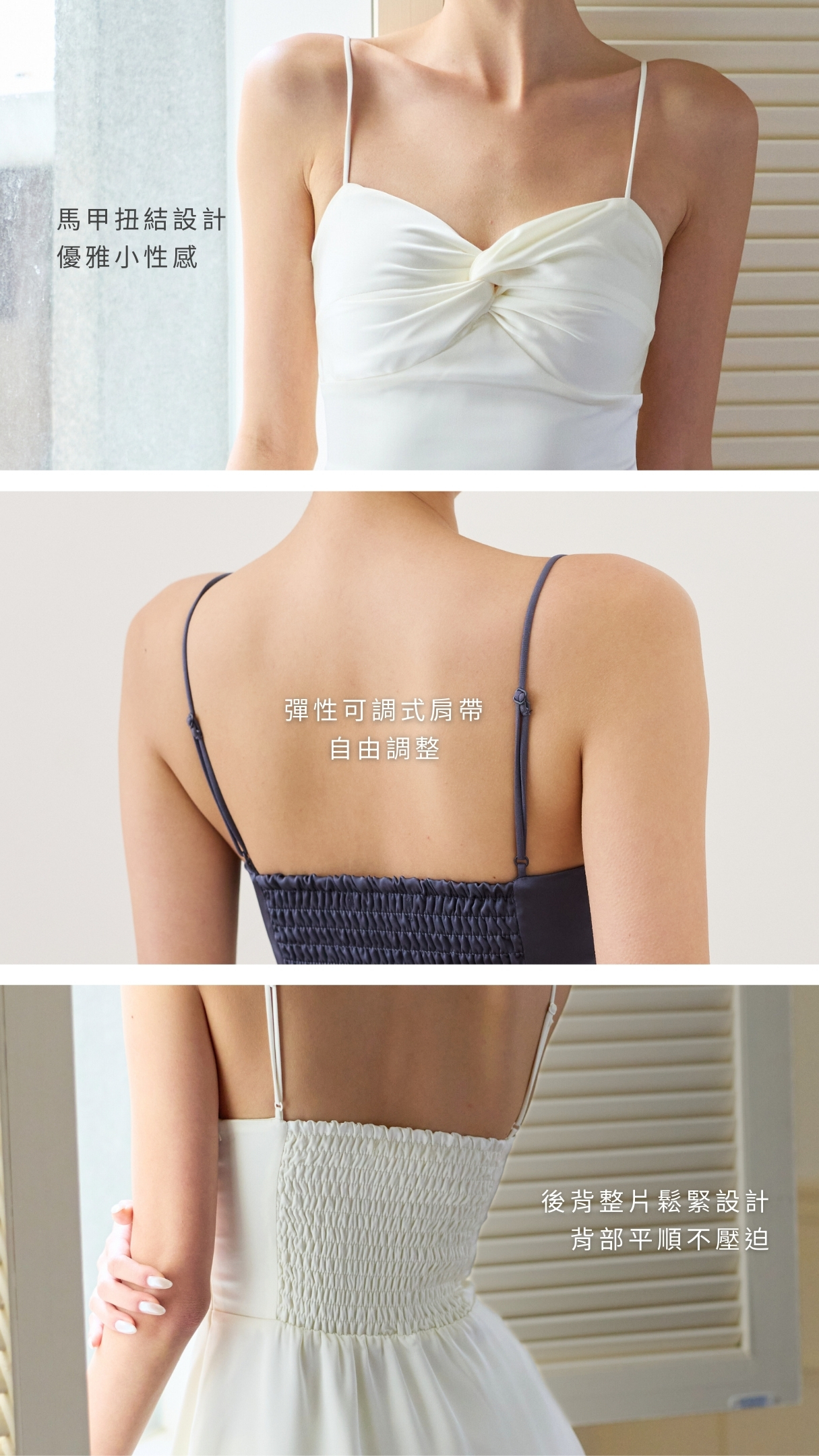 ➀ 馬甲扭結設計,優雅小性感