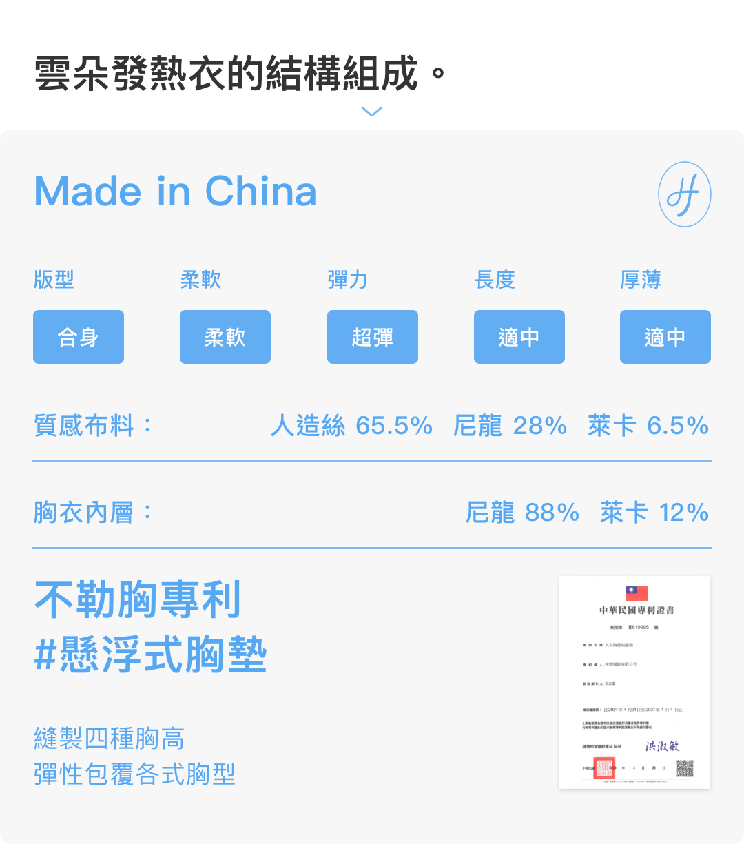 胸墊服貼度:中