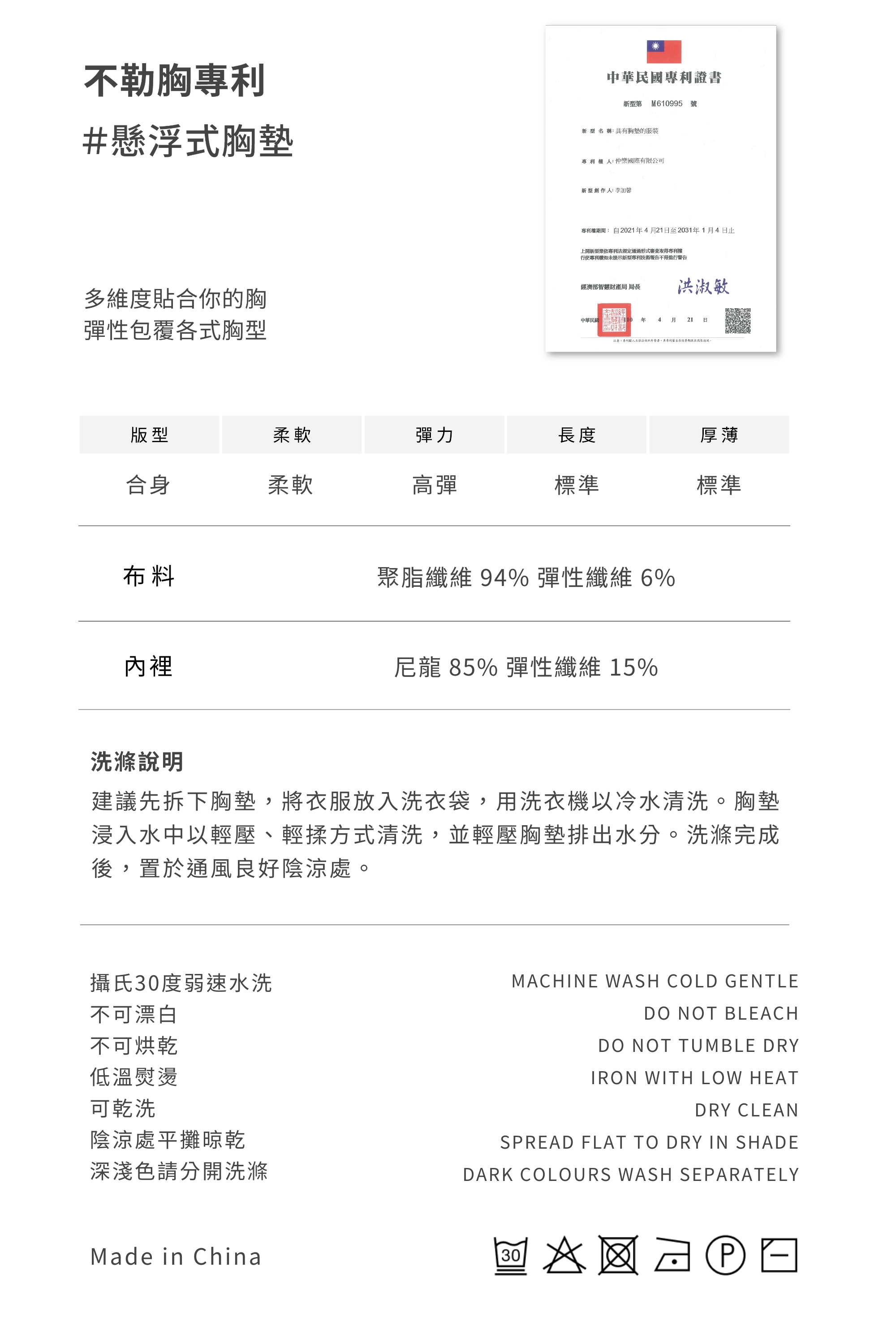 ➀ Baby級布料:仿嬰兒衣的超細纖維,2倍的極致彈力